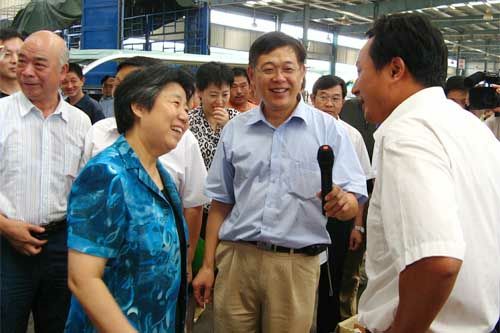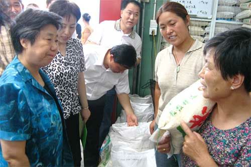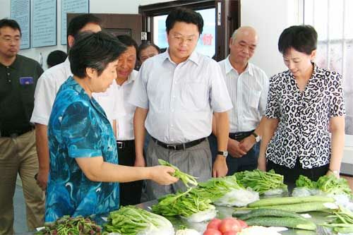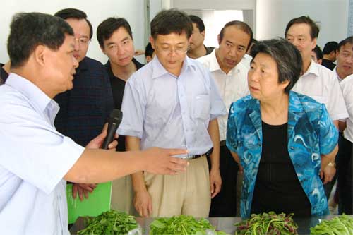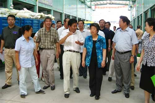 8月25日11時,江蘇省委副書記張連珍帶領省有關單位負責同志一行30余人,在江蘇省委常委、無錫市委書記楊衛澤、副市長吳建選的陪同下,視察了朝陽農產品大市場的組成部分,蔬菜市場、水果市場和朝陽糧油市場。聽取了集團張海良董事長和總經理楊興德,關于無錫朝陽農產品大市場發揮“基地+市場+連鎖超市+安全放心,一體兩翼三贏”朝陽模式在推動農業產業化中的作用和服務“三農”,豐滿菜籃子供應,實現農民致富、市民得益、企業發展,社會和諧,使朝陽農產品大市場真正成為“農民致富的市場、市民放心的廚房”的具體做法和有關朝陽農產品大市場后續發展的設想,得到了省市領導的充分肯定。省市領導還興致勃勃地觀看了朝陽農產品大市場的規劃發展模型,在朝陽糧油市場觀看了“網上糧行”的交易實況。