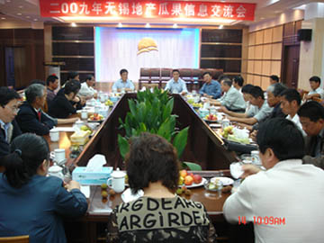 無錫蔬菜果品行業協會主辦的2009年無錫地產瓜果信息交流會于5月14日上午在朝陽農產品大市場召開。來自無錫市各縣區的葡萄、水蜜桃、楊梅、草莓、西瓜、小水果等果品生產園區、有關農業生產管理部門的領導、代表和朝陽股份、天惠超市的相關領導出席了會議。市工商聯領導到會作了重要講話。王漢如會長主持會議,并作會議小結;汪海良副會長作了主題發言。