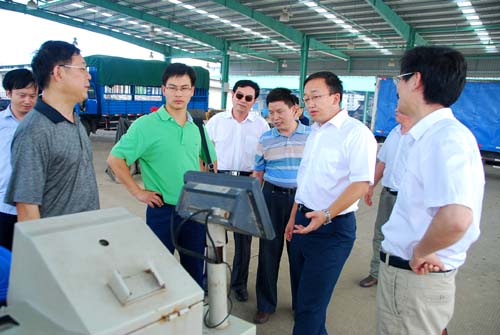 無錫朝陽集團總經理楊興德、副總經理錢韌向商務部領導匯報了市場建設和信息化系統建設情況,并陪同參觀了朝陽農貿市場。