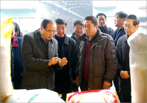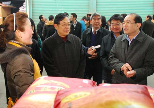 徐副市長(zhǎng)一行還來(lái)到專(zhuān)門(mén)經(jīng)銷(xiāo)東北大米的商鋪前,仔細(xì)詢(xún)問(wèn)東北大米的產(chǎn)地、品種、價(jià)格情況,當(dāng)?shù)弥@些優(yōu)質(zhì)東北大米在無(wú)錫市場(chǎng)很受歡迎時(shí),他高興地向這位客商表達(dá)感謝和新年祝福。并希望各位客商一定要把好商品安全關(guān),為無(wú)錫提供更多優(yōu)質(zhì)放心的商品。