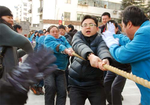 今年的鬧元宵活動分別由拔河、自行車慢騎、撲克、象棋比賽、綜合游藝、卡拉OK等項目組成,綜合游藝活動包括畫龍點睛、點鞭炮、投籃、飛鏢、射氣球、敲銅鑼等大家喜聞樂見的小游戲。古運河畔人聲鼎沸,處處洋溢著喜慶。經過激烈爭奪,朝陽股份公司獲得了拔河比賽的第一名,儲運公司獲得第二。陳偉(儲運)、李紅江(天惠)、劉守紅(天惠)、王鳳英(朝陽)分獲自行車慢騎男、女組比賽前二名。此外,撲克比賽的第一、第二名被儲運公司包攬,分別是朱亞平/周曉與陸純連/李建國。象棋比賽的第一、二名則分別由夏洪健(朝陽)、鄧惠慶(天天廠)獲得。
