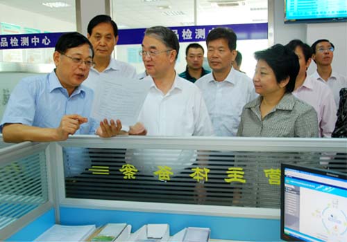 無錫朝陽集團董事長張海良陪同檢查組一行參觀了大市場監控中心、檢測中心、信息中心和結算中心,并詳細介紹了大市場在溯源體系建設、電子交易結算、農產品農殘檢測等方面的具體實施和運作情況。在朝陽農產品大市場規劃圖面前,桑副委員長認真聆聽了大市場總體發展框架的規劃理念,充分肯定了集團公司立足長遠、放眼未來的發展眼光和思路。檢查組一行還深入水果市場交易區,了解現場交易的實地情況和溯源電子秤的使用情況。最后,桑副委員長在發布農產品價格的電子顯示屏前停下了腳步,他仔細查看當天各類農產品的價格行情,要求農產品大市場要密切跟蹤價格走勢,充分關注民生價格,切實維護百姓利益。