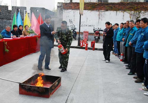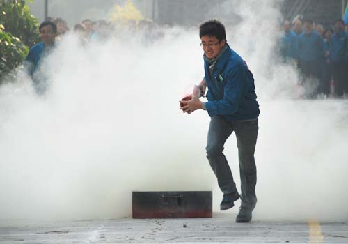南長消防大隊李警官專程到場,向參賽的員工講解消防知識,并示范滅火器材的操作過程。