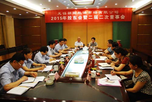 2015年6月12日上午,無錫朝陽糧油市場有限公司在無錫朝陽集團三樓第二會議室召開二屆二次董事會。公司董事會全體成員、監事會全體成員參加了會議,相關人員列席了會議。