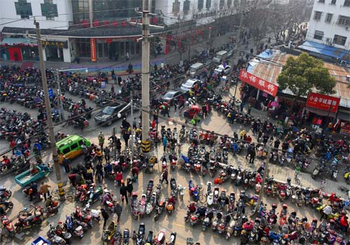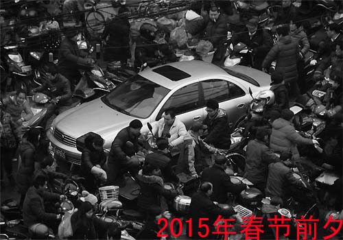 還記得去年那張如馬賽馬拉角馬過河版般照片嗎?一輛私家車深陷電動車的漩渦難以自拔,成為諸多媒體轉載的熱點(小編表示稿費至今未得到)。