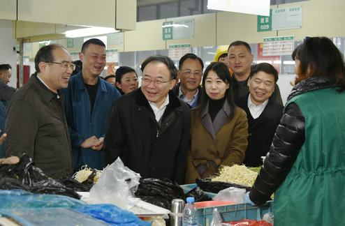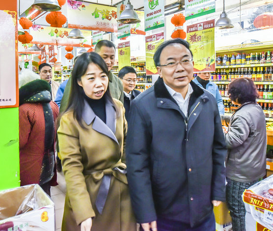 1月24日(臘月廿七)上午,無錫市委書記李小敏帶領(lǐng)市政府有關(guān)部門負(fù)責(zé)人一行,來到朝陽曹張農(nóng)貿(mào)市場和天惠超市曹張店,視察節(jié)前供應(yīng)工作。市委副書記、梁溪區(qū)區(qū)委書記徐劼,梁溪區(qū)區(qū)長秦詠薪陪同視察。無錫朝陽集團董事長張君君、總經(jīng)理楊興德、副總經(jīng)理張慶卿接待領(lǐng)導(dǎo)視察團一行。         上午九時許,李書記一行走進(jìn)朝陽曹張農(nóng)貿(mào)市場,實地視察了市場一樓的各個交易區(qū),聽取了張董事長有關(guān)曹張農(nóng)貿(mào)市場改造情況和節(jié)前農(nóng)產(chǎn)品市場供應(yīng)情況的匯報,對曹張市場改造后整潔的環(huán)境面貌和有序的交易秩序表示了充分肯定。         視察中,李書記還在蔬菜攤位前停留,與經(jīng)營戶和消費者親切交談,仔細(xì)詢問經(jīng)營戶的經(jīng)營情況和消費者采購年貨情況,以及對市場改造的滿意度和意見建議。大家都表示市場改造后硬件環(huán)境大幅度改善,政府和企業(yè)切實為經(jīng)營戶和周邊的老百姓做了一件大實事,讓大家的菜籃子拎得更輕松。