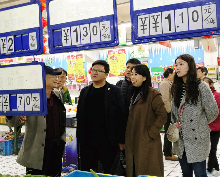 下午,一行人又來到位于市中心南禪寺旁的朝陽農貿市場,先后參觀了農貿市場一樓、二樓各經營區域、市場信息機房和天惠超市朝陽店。張董事長向考察團詳細介紹了朝陽農貿市場“低進嚴管”的運營管理模式和在菜價管理、質量溯源、物聯網建設、配套服務等方面的做法和經驗。考察團一行對朝陽農貿市場既規范又精細的管理體系非常感興趣,對農貿市場的菜價管理和天惠超市的平價菜贊不絕口,認為我集團在市場建設上注重發揮菜籃子的公益作用具有典型的示范性。他們表示要把朝陽經驗帶回去,在北京“菜籃子”建設中發揮更好的作用。         最后,雙方在農貿市場正門口合影留念,為此次考察畫上了圓滿的句號。