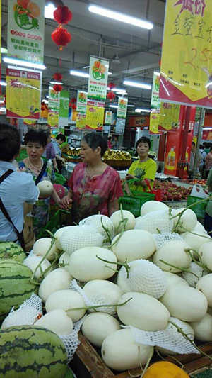 | 炎炎夏日,西甜瓜類商品無疑是廣大顧客的消費首選。天惠超市為滿足廣大顧客的需求,經(jīng)與朝陽農(nóng)產(chǎn)品的大市場對接,像麒麟、特小鳳西瓜和小白龍、西州蜜甜瓜等十余款不同品種的西甜瓜每日足量供應(yīng);并堅持薄利多銷,讓利給廣大消費者。特別是近日組織的小白龍?zhí)鸸希粌H口感清脆香甜,價格上更是勁爆特惠僅需2.0元/斤,受到了廣大顧客的熱烈歡迎,單品日均銷售量達到5噸以上。 2017年以來,天惠超市針對水果供應(yīng)做出了積極的調(diào)整。在季節(jié)性大品種上做到量足價低的同時,更進一步增加了如櫻桃、黃油桃各類花色水果品種以及像榴蓮、火龍果、山竹、藍莓等一些年輕人喜愛的進口水果供應(yīng)。不但滿足和豐富了不同顧客群體的消費需求和選擇空間,并在定價上沒有因為小眾品種和進口水果的身份提高毛利空間,仍舊以平價親民的價格供應(yīng)給廣大消費者。