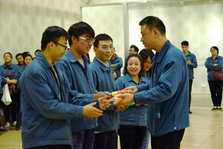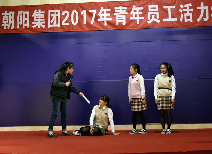 雙11,從光棍節,到購物狂歡節,如今更變成了無錫朝陽集團的青年節。今年的11月11日下午,來自朝陽股份、天惠超市、儲運公司、集團科室和朝陽班的80多名青年職工代表陸續來到無錫文化工藝品市場三樓大廳內,共同參與到一年一度的青年活動中來。朝陽股份房坤主持了本場活動。         活動共有兩個環節。在第一場“才藝展示”環節中,來自三個主體單位和朝陽班的10組選手分別拿出了自己的拿手絕活,有唱歌、相聲、小品、籃球秀、軍體拳、舞步絕活等表演。臺上的選手非常認真的進行表演,并為自己拉票;而臺下的觀眾在微信投票小程序中為自己喜愛的節目進行投票。表演精彩處一次又一次的掌聲,臺上臺下的密切互動,很快就把現場的氣氛調動了起來。最后來自朝陽股份的王藝、天惠超市王崢聯合打的一套軍體拳贏得了大家的共同認可,以最高票獲得了冠軍;而來自朝陽班的詩朗誦《致橡樹》以其聲情并茂的演繹感染了很多觀眾,獲得了第二名。         在第二場團隊活動環節,各單位青年職工臨時組隊,共有6組團隊一起競技“五人六足”趣味賽。這個活動非常考驗團隊的凝聚力和統一作戰精神,最后朝陽股份團隊脫穎而出,贏得了最終的勝利。         集團總經理室主要領導、各單位主要領導都出席了本次活動,給予公司廣大青年職工極大的支持和鼓勵。集團總經理楊興德先生最后做重要講話,他表示,青年是國家的未來,更是企業的未來。今天的活動辦得很有朝氣和活力,一年更比一年好。希望廣大青年職工能夠在工作和生活中更多展現活力,更好發揮能力,打造朝陽企業的更強競爭力,為我們“百年朝陽”的奮斗目標而不斷努力!