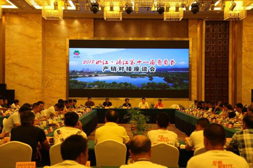 8月6日—8日,無錫朝陽股份有限公司水果市場副經理張曉云、蔬菜市場副經理于愛娟以及葡萄客商代表參加了由中國果品流通協會、浙江省農業廳、浙江省供銷合作社聯合社等主辦、浦江縣人民政府承辦的"浙江·浦江第十一屆葡萄節暨浦江葡萄區域公用品牌啟動儀式"。                                        8月7日晚上,2018浙江·浦江第十一屆葡萄節產銷對接座談會在浦江隆重舉行。中國果品流通協會、上海市果品行業協會、上農批、杭州果品集團、朝陽集團等相關領導、100余名外來客商代表,以及30多位浦江本地葡萄產業、黃桃產業代表齊聚一堂,共商浦江名優農產品未來發展。8月8日上午,舉行了區域公用品牌授牌儀式,縣委書記帶隊參觀了蔣才文村葡萄園等,講解了葡萄鋼管噴霧施肥澆水的先進技術。                                       此次會議旨在全面宣傳、推介和展示“浦江葡萄“區域公用品牌形象,提升浦江葡萄的知名度與美譽度,提高市場的影響力與核心競爭力,助推農業增效、農民增收,助力鄉村振興。