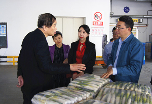 5月9日下午,甘肅省人大社會建設委員會委員、白銀市人大常委會黨組書記、主任宋奮吉一行10余人,在無錫市人大常委會黨組副書記、副主任朱民陽等市領導的陪同下,到朝陽農產品大市場參觀考察。省人大、市人大代表、朝陽集團董事長張君君熱情招待了來訪領導。                                                來訪一行先后參觀了三中心、蔬菜、水果兩大市場、萬噸冷庫、北二庫以及糧油市場。張董向來訪領導詳細介紹了市場的經營管理、建設發展情況,以及在電子化交易結算、溯源體系建設、食品安全檢測、保供穩價保安全等方面所作的工作。