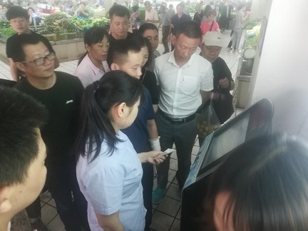 等區域,華經理詳細地介紹了農貿市場的價格管理以及肉菜追溯體系建設等具體工作,雙方并就智慧農貿建設工作進行了交流。
