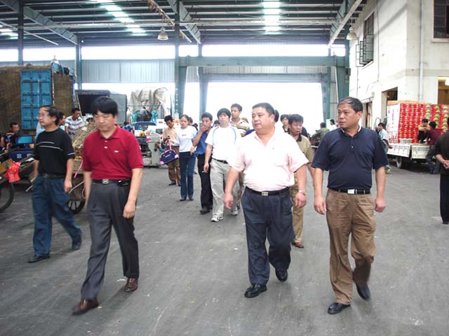 華中客人們實地參觀了錫澄市場2.5萬平方米的現代化交易大廳,先進的電子磅秤結算系統和監控系統。并聽取了朝陽股份公司吳書記關于朝陽股份經營、管理、發展和分配機制等方面的詳細介紹。客人們對朝陽股份公司近年來通過轉觀念、創新路、求發展所取得的優異業績作出了高度評價。