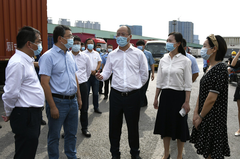 朱書記先后來到朝陽陳列館、信息中心、水果市場、中停車場,認真聽取了朝陽農產品大市場在疫情防控、貨源組織、保障供應等方面的具體舉措,詳細詢問了市場對人、車、物的管控情況,市場人員的核酸采樣情況及中高風險地區來錫人員的應急處置措施,朱總逐一進行了匯報。