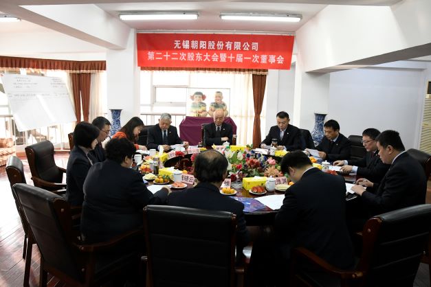 無錫朝陽股份有限公司第二十二次股東大會暨十屆一次董事會于2022年12月13日在錫澄大廈五樓會議室召開。公司第九屆董事會、監事會全體成員及財務部長參加了本次會議。	 			會議審議通過了《行政工作報告》、《財務工作報告》、《利潤分配方案》、《監事會工作報告》等議案。	 			會議選舉產生了無錫朝陽股份有限公司第十屆董事會、監事會。	 			會議一致選舉張海良先生為無錫朝陽股份有限公司第十屆董事會董事長。	 			會議一致選舉錢韌先生為無錫朝陽股份有限公司第十屆監事會主席。	 			會議同意繼續聘任朱健祥為公司總經理,繼續聘任錢浩淵為財務部長。	 			會議同意公司2023年度經營指標計劃。	  |