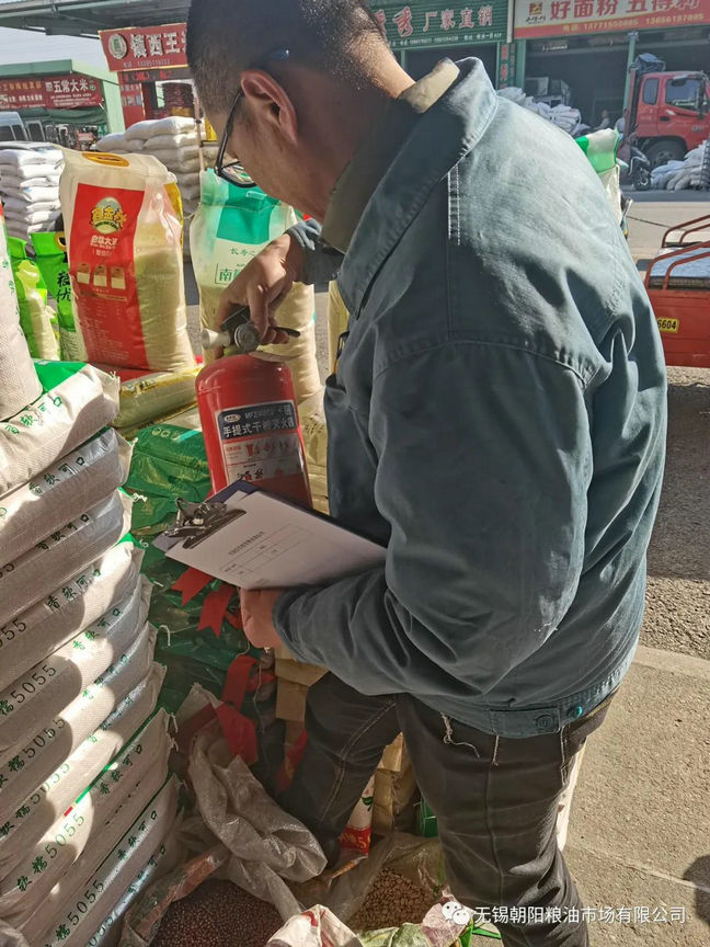 無錫朝陽糧油市場作為以物業租賃為主,在日常管理的過程中,始終緊繃安全生產這根弦不放松,定期、不定期組織安全檢查,全面排查安全隱患,按區域落實安全管理責任,確保市場經營安全和消防安全。今年朝陽糧油市場已和市場內所有客戶簽訂安全協議,300余份。開展了包括消防設施設備,用電安全,特種設備使用安全,糧油質量安全等專項檢查。       在用電方面,朝陽糧油市場經理室特別安排電工班組對現場管理人員進行培訓,切實保障客戶安全經營。