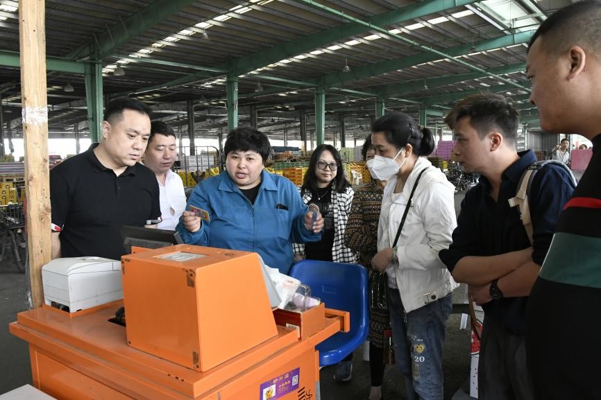 來訪一行參觀考察了朝陽陳列館、信息中心、檢測中心、結算中心、蔬菜、水果兩大市場、萬噸冷庫及糧油市場,較全面地了解了市場的發展歷程、管理模式,以及通過信息化技術手段致力于打造智慧市場的相關舉措。他們對市場的全程電子化交易結算、溯源體系建設、食品安全檢測、大數據大平臺建設給予了高度贊譽。