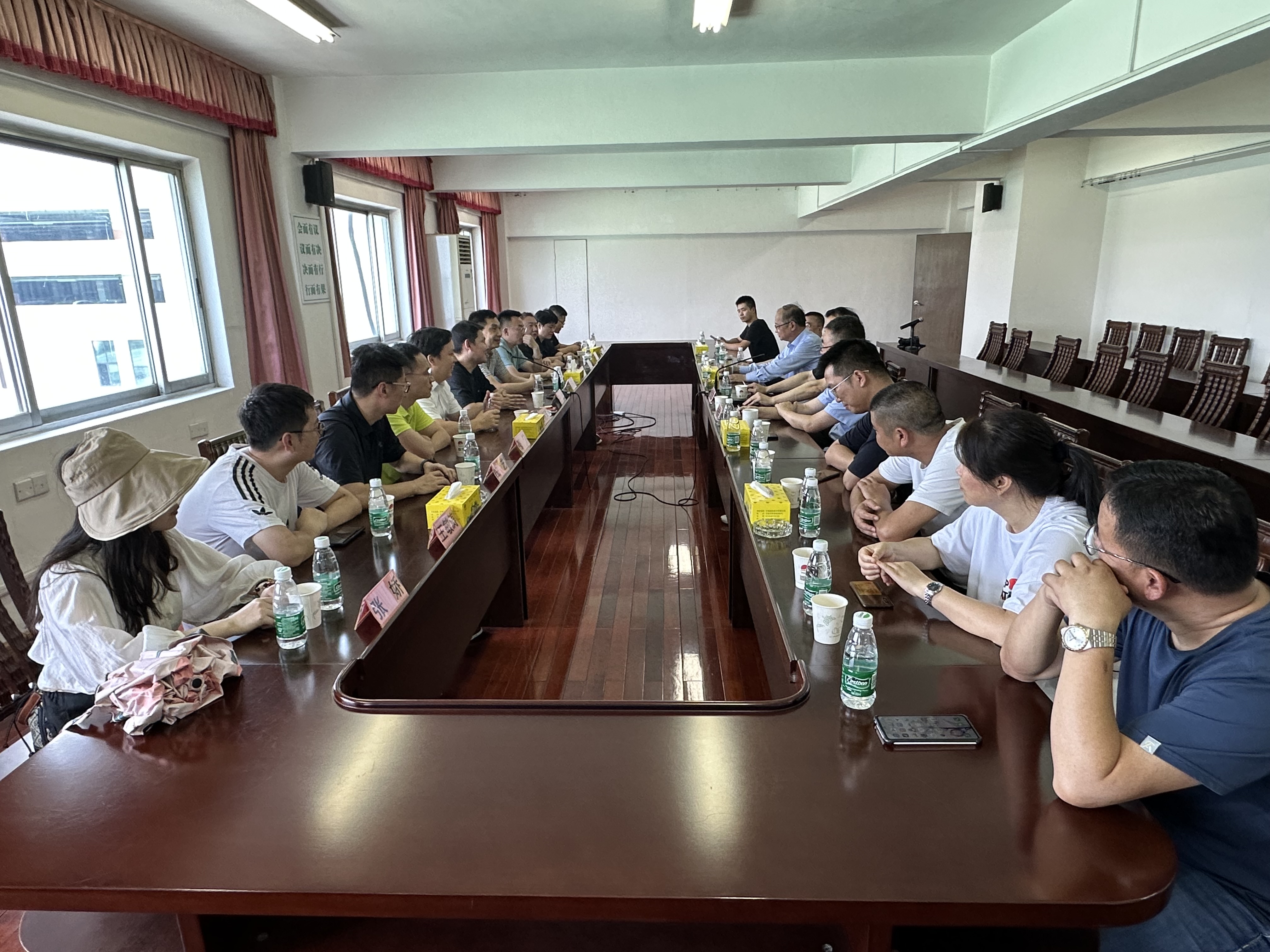 參觀結束后,雙方來到五樓會議室,就新形勢下現代化農產品物流園區發展方向作了深入探討,并希望今后能夠繼續加強交流,雙方多走動,互相學習,合作共贏,共同進步,讓市場發展更上一個臺階。 	(供稿:張柯宇)