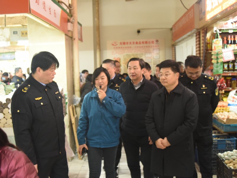 2024年1月12日,江蘇省市場監督管理局副局長陳琪宏一行在無錫市市場監督管理局領導的陪同下,到朝陽農貿市場檢查節前價格管理工作。無錫朝陽集團公司總經理楊興德詳細地向領導們介紹了市場的相關運營情況。朝陽農貿市場經理室華艷做好現場講解工作。    領導們分別檢查了蔬菜區、肉類區、豆制品區、松鶴牌油面筋、檢測室、惠民平價區的明碼標價情況。領導對市場的經營戶管理工作非常認可,尤其在誠信經營戶評選方面,領導們還特意到紅榜攤位上了解情況,當看到經營戶只銷售一個單品萵苣,生意還很好,表示市場薄利多銷、比學趕超的形式給經營戶帶來了源源不斷的客流。陳琪宏副局長希望朝陽農貿市場再接再厲,做好春節前保供穩價保安全工作,為老百姓的年夜飯把好關。(供稿:劉天嬌)   |