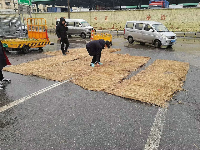近期低溫雨雪天氣,導致北區部分路面濕滑難行。市場員工積極行動起來,掃除積冰余雪;門禁安保組和現場管理組協同配合,在市場易滑路段、北濱路9號門進門斜坡處等地鋪設草墊,為進場交易車輛、人員做好安全保障。