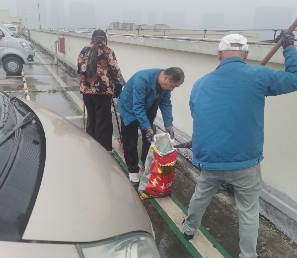 由于地方大,人員少,北區首先對北二庫樓頂的排水井、坡道上和冷庫屋頂的排水口等多處進行清掃垃圾、挖淤泥、掃樹葉,共計清理垃圾20多袋達到百余公斤。