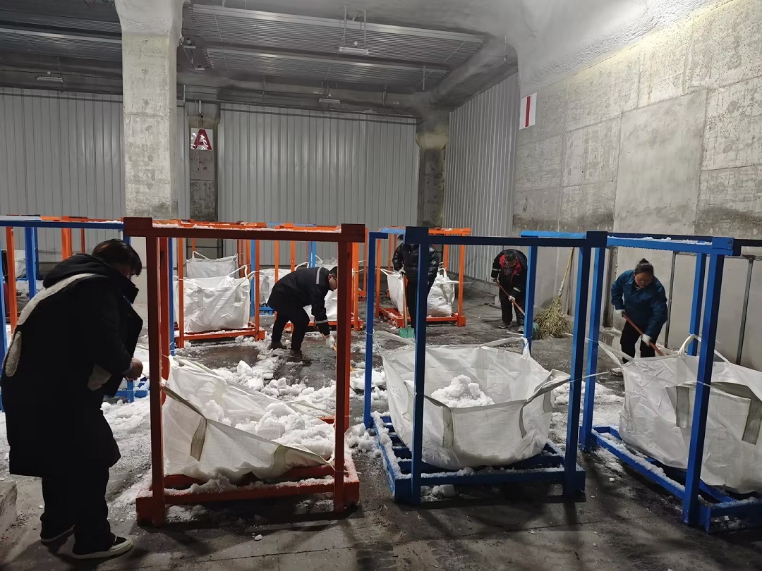 凍庫在運行過程中,由于庫內外溫差較大,制冷設備長時間工作導致蒸發排管表面結霜較多,影響制冷效果,增加能耗。為使冷庫保持穩定低溫,確保貨物存儲狀態,降低設備耗能,朝陽北區、冷庫聯系廠家、組織員工、協調搬運,于17.18日兩天開展朝陽冷庫11號庫除霜工作。         冷庫的除霜工作從冷庫機房開始,廠家李師傅會同集團北區、冷庫技術人員采用熱氟除霜法除霜,使排管表面結霜融化、脫落。隨著機房各設備的運行,冷庫員工、搬運工、叉車工等按照原定計劃,分工協作,有序開展除霜工作。除霜開始前,預先在鋁排管結霜下方安放巧固架,巧固架上套袋并固定,用于承接鋁排管上掉落霜塊,減少除冰鏟雪工作量。待鋁排管上霜塊全部掉落,大家便將巧固架四周掉落霜塊鏟入套袋,待四周積霜清理完畢,再由叉車工將裝滿冰霜的巧固架叉出庫外。大家鏟霜的鏟霜,掃霜的掃霜,相互配合,只為更好更快的把結霜清除干凈,以期盡快恢復11號庫使用。         通過除霜,降低了冷庫耗能,提高了運行效率,為朝陽萬噸冷庫的安全運營奠定了良好的基礎。化霜結束后,后續還安排了鋁排管吊筋加固等維修工作。