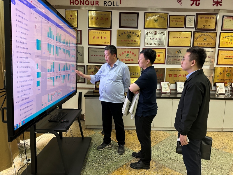 來訪一行先后參觀了朝陽陳列館、信息中心、檢測中心、結算中心、蔬菜水果兩大市場和糧油市場,重點了解了朝陽農產品大市場在數字化轉型升級及電子交易結算系統應用的情況。