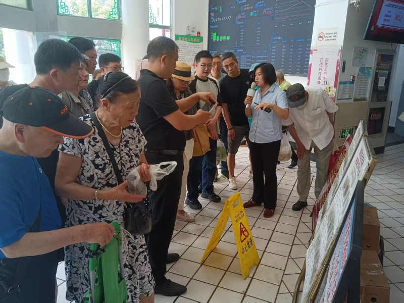 6月17日上午,南京市鼓樓區(qū)政協(xié)委員一行10人到朝陽農(nóng)貿(mào)市場參觀考察,為推動(dòng)市場優(yōu)化升級(jí)、提升民生服務(wù)建言獻(xiàn)策。朝陽農(nóng)貿(mào)市場經(jīng)理華艷熱情地接待了來訪領(lǐng)導(dǎo)。    華經(jīng)理首先帶領(lǐng)領(lǐng)導(dǎo)們來到智慧大屏前,詳細(xì)介紹了關(guān)于市場經(jīng)營數(shù)字化建設(shè)、保供穩(wěn)價(jià)保安全的具體工作,并到攤位上親自體驗(yàn)了手機(jī)掃碼查詢商品溯源信息的全過程;隨后委員們參觀了肉類、糧油綜合、豆制品、水產(chǎn)等區(qū)域參觀了一攤一眼安保系統(tǒng),大家對朝陽農(nóng)貿(mào)市場的管理工作贊不絕口,尤其是當(dāng)看到密密匝匝的客流,惠民平價(jià)區(qū)的排隊(duì)長龍,紛紛表示:質(zhì)優(yōu)價(jià)廉、誠信經(jīng)營、數(shù)字化建設(shè)就是朝陽農(nóng)貿(mào)市場客流量的保證。