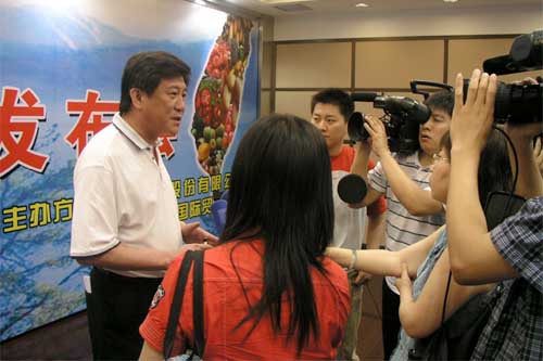 新聞發(fā)布會(huì)在無(wú)錫朝陽(yáng)股份有限公司所屬的錫澄果菜交易市場(chǎng)舉行,巨大的背景版似乎讓人們感受到阿里山松籟與太湖濤聲的呼應(yīng)。