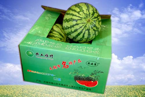 無錫錫山黃土塘村種植戶蔣建康生產的西瓜,采用高科技設備栽培瓜色淺綠花皮,果型圓潤、口感松脆、質地細膩。商品瓜無生瓜,確保無注糖、無激素、無農藥殘留,是新一代無公害食品,富含人體所需的營養物質。